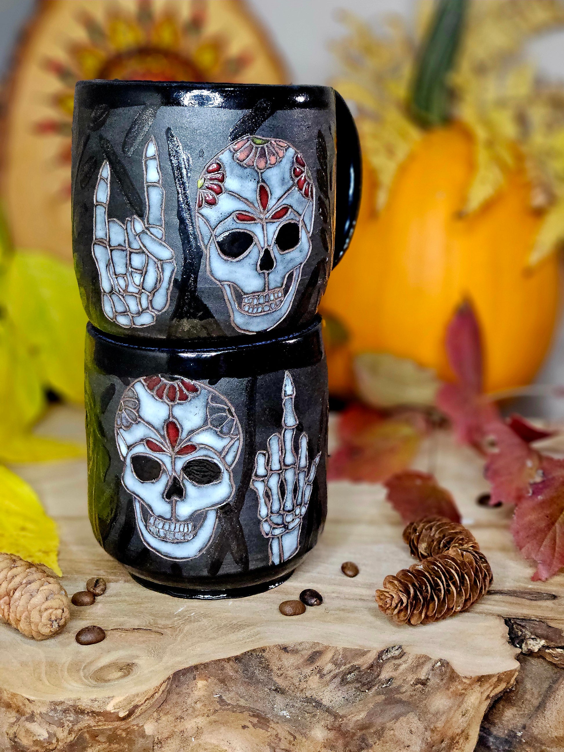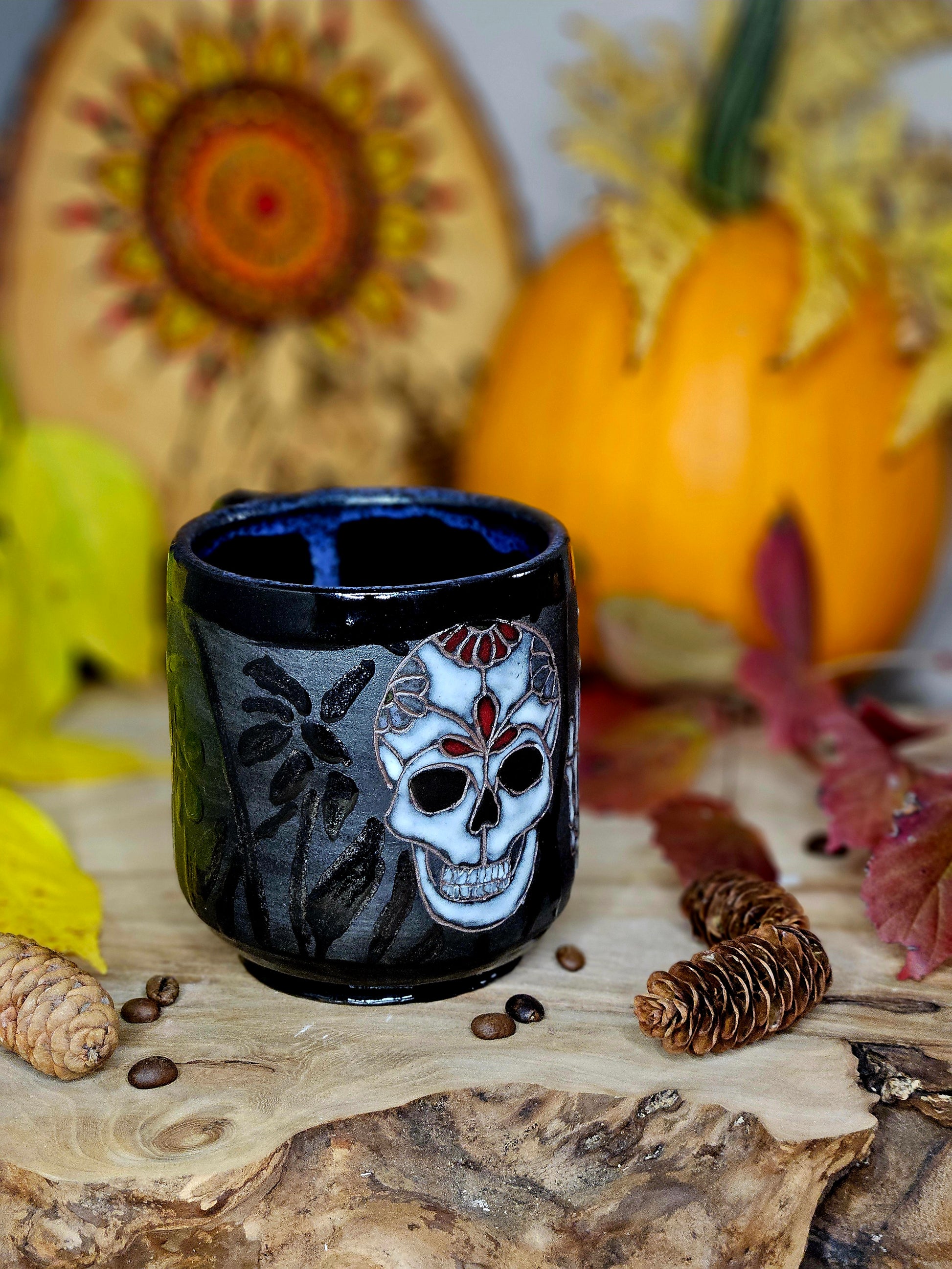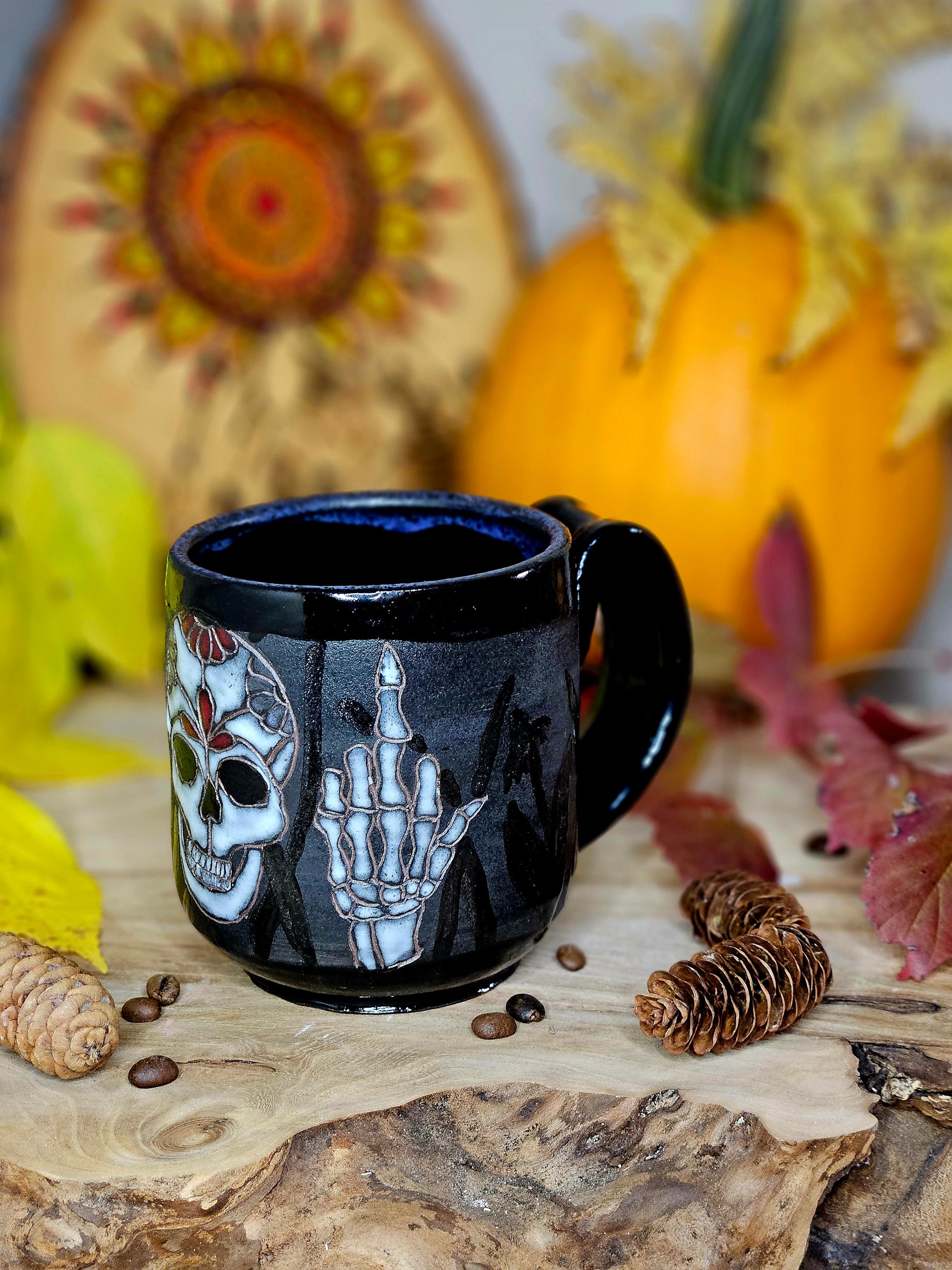 Elevate your coffee ritual with this handcrafted pottery mug. Each mug boasts 4-8 hours of custom art work, making every piece one-of-a-kind. Its ergonomic handle and generous capacity (13-16oz) provide both comfort and functionality. Perfect for cozy mornings or afternoon tea, this mug adds artisanal charm to any home.